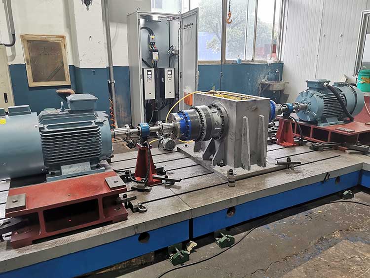 減速機試驗臺是檢測減速機整機性能指標的試驗裝置。該裝置測試減速機的各種性能參數,包括:減速機輸入轉矩、轉速、功率,輸出轉矩、轉速、功率,效率,溫升,振動、噪音等。該試驗臺能夠滿足各類減速機性能測試,為減速機的生產制造、維修和現(xiàn)場應用提供準確的參數指標。
